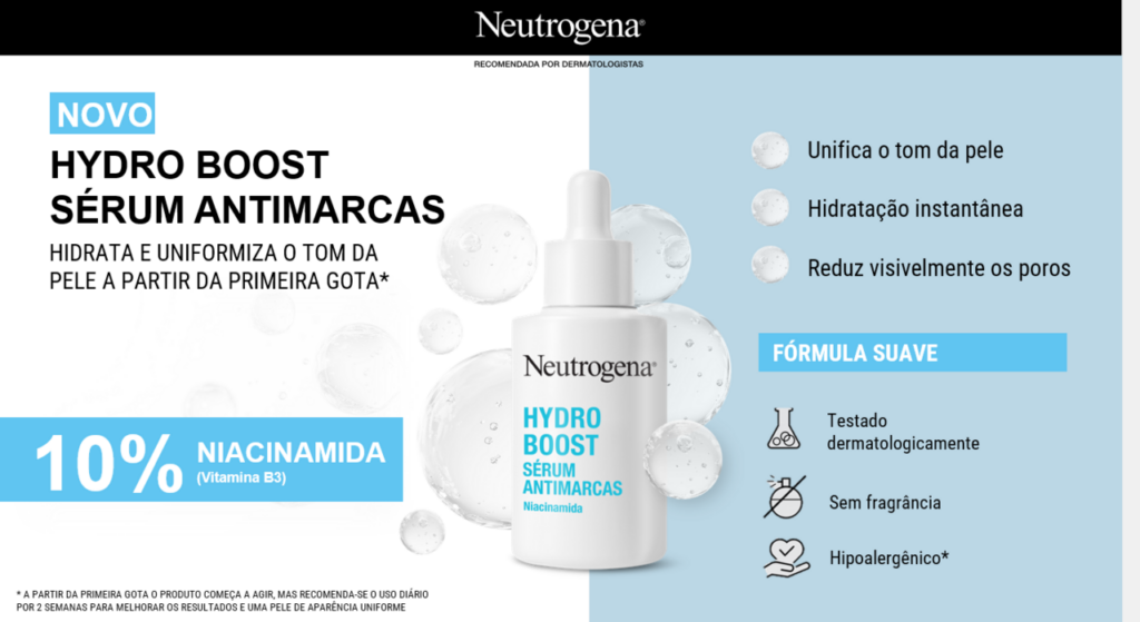 Além disso, as peles maduras também precisam de um cuidado próximo. A indicação perfeita para a skincare do dia a dia é o Sérum Neutrogena Hydro Boost Antimarcas, que garante um aspecto uniforme e suaviza a aparência da pele, além de ter um efeito hidratante. Ele é indicado para mulheres de 35 a 60 anos.