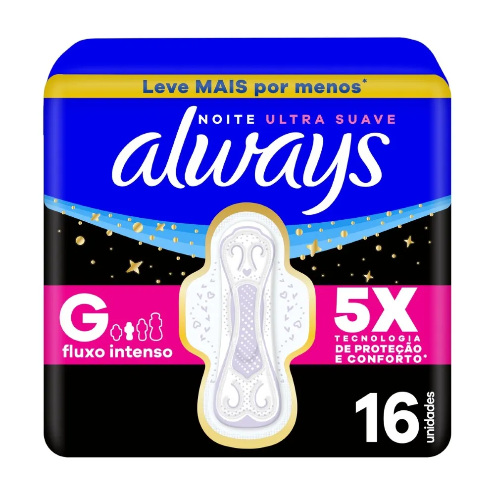 Absorvente Always Noturno Suave Tamanho G com Abas 16 Unidades