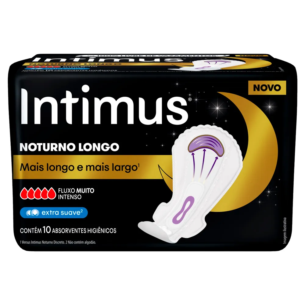 Absorvente Intimus Noturno Longo e Mais Largo Extra Suave Fluxo Muito Intenso com Abas 10 Unidades