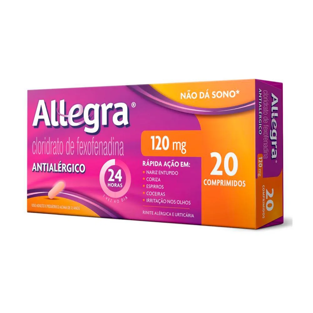 "ALLEGRA 120MG ANTIALÉRGICO COM 20 COMPRIMIDOS É UM MEDICAMENTO. SEU USO PODE TRAZER RISCOS. PROCURE O MÉDICO E O FARMACÊUTICO. LEIA A BULA. SE PERSISTIREM OS SINTOMAS, O MÉDICO DEVERÁ SER CONSULTADO."