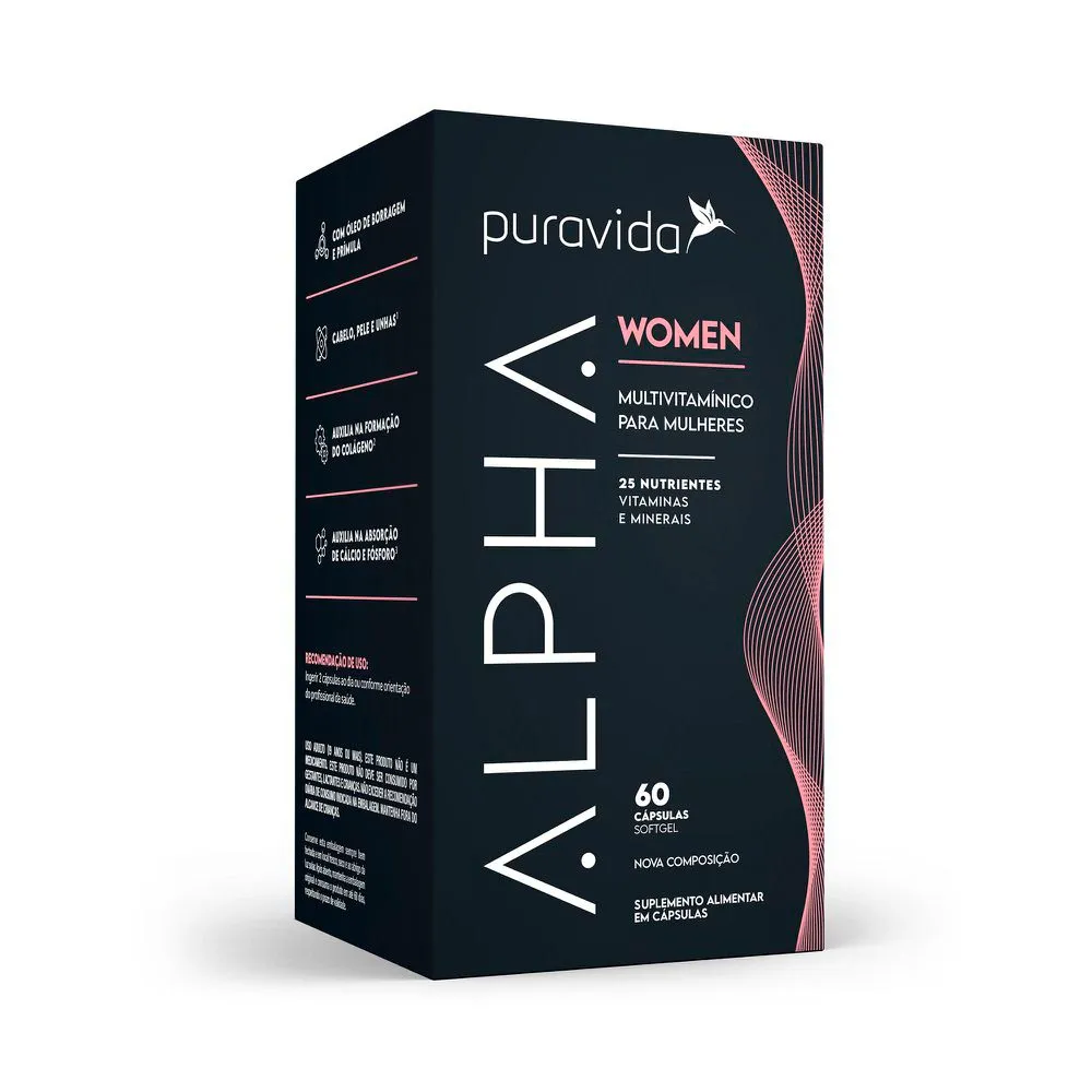 ALPHA WOMEN é a fórmula premium de multinutrientes da Puravida: vitaminas, minerais e outros micronutrientes.