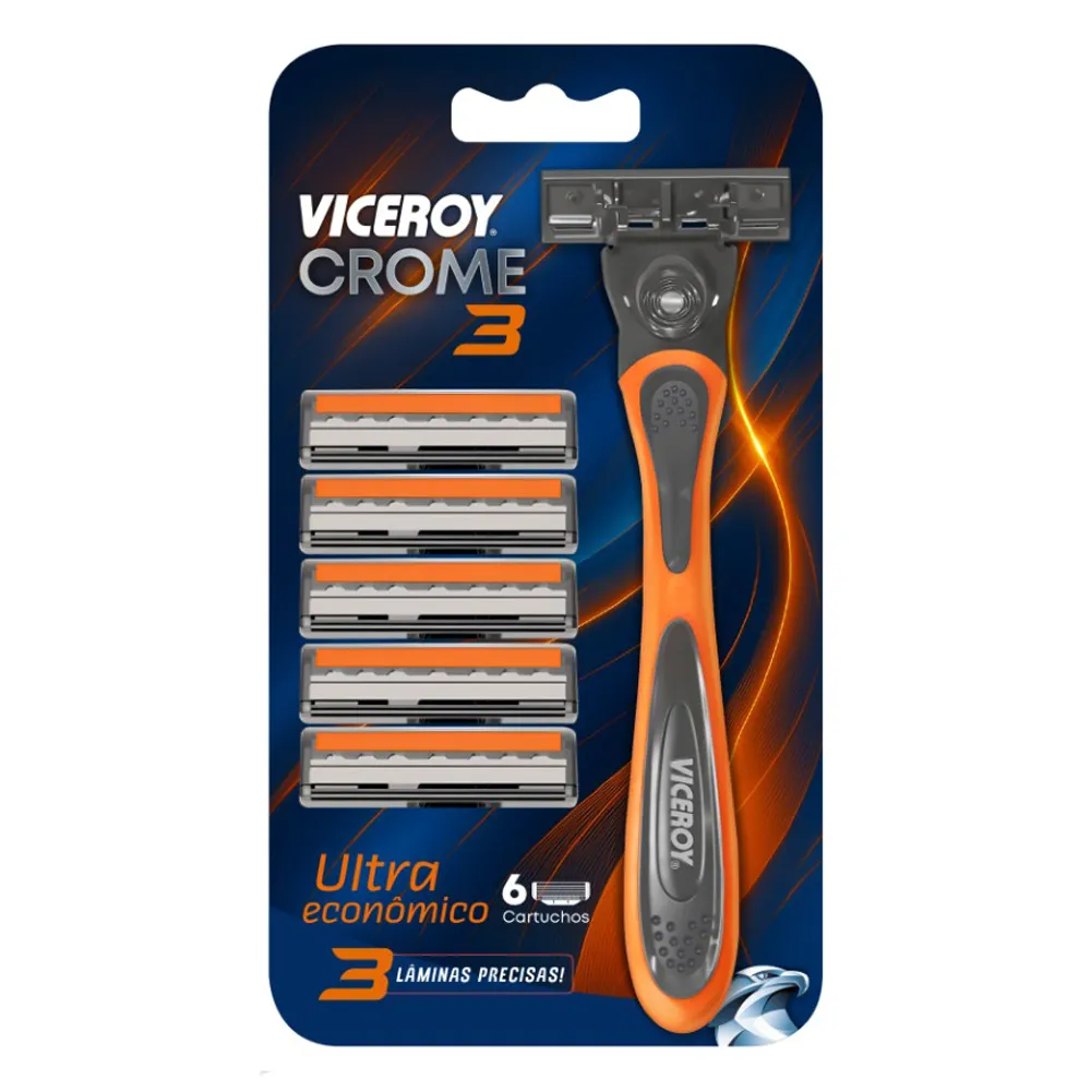 O Aparelho de Barbear Viceroy Crome 3 foi projetado para o homem que busca um barbear rente, confortável e com o melhor custo-benefício do mercado. Equipado com 3 lâminas precisas, ele garante um corte eficiente logo na primeira passada, minimizando a irritação da pele e proporcionando um acabamento impecável.