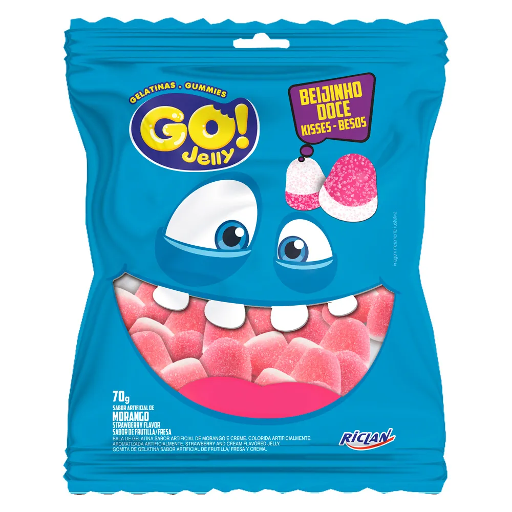 Experimente a doçura irresistível das Gominhas Go! Jelly Beijinho Doce! Com 70g de sabor, essas gominhas são a combinação perfeita entre o sabor frutado do morango e o cremoso do beijinho, proporcionando uma experiência de sabor única e deliciosa.