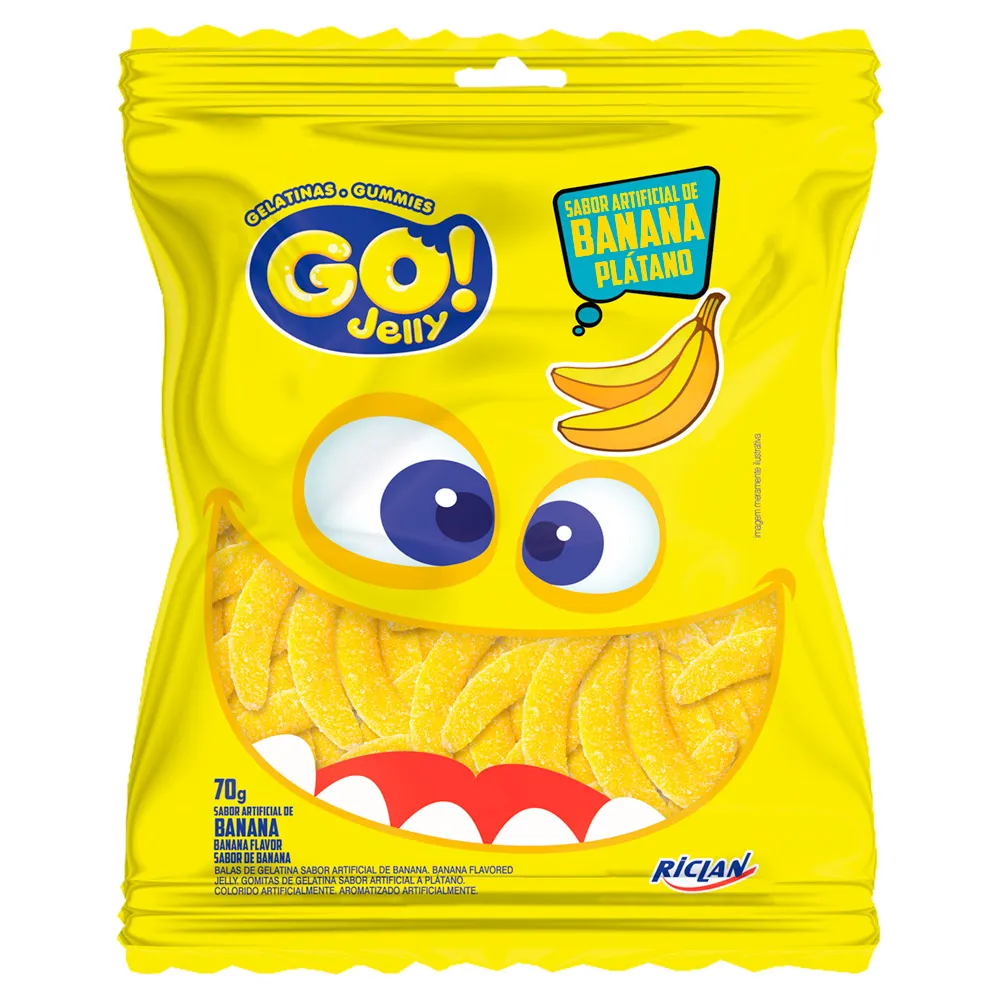 Delicie-se com o irresistível GO! Jelly Banana! Essas gelatininhas em formato divertido são uma verdadeira festa de sabor, oferecendo um autêntico gosto de banana em cada mordida. Com 70g de puro prazer, são ideais para compartilhar ou saborear a qualquer hora.