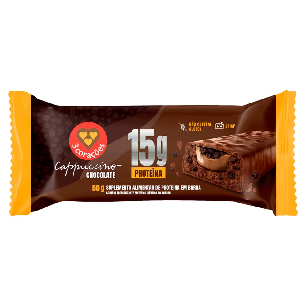 Para os apaixonados por café e entusiastas da vida saudável, a 3 Corações elevou o conceito de snack proteico. Esta barra de 50g combina a cremosidade do chocolate com o toque inconfundível do cappuccino tradicional, proporcionando uma experiência sensorial única a cada mordida.