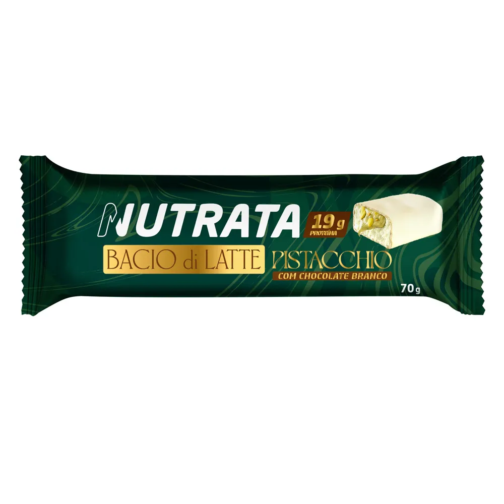 Barra de Proteína Nutrata Bacio di Latte Pistacchio com Chocolate Branco 70g - 19g de Proteína