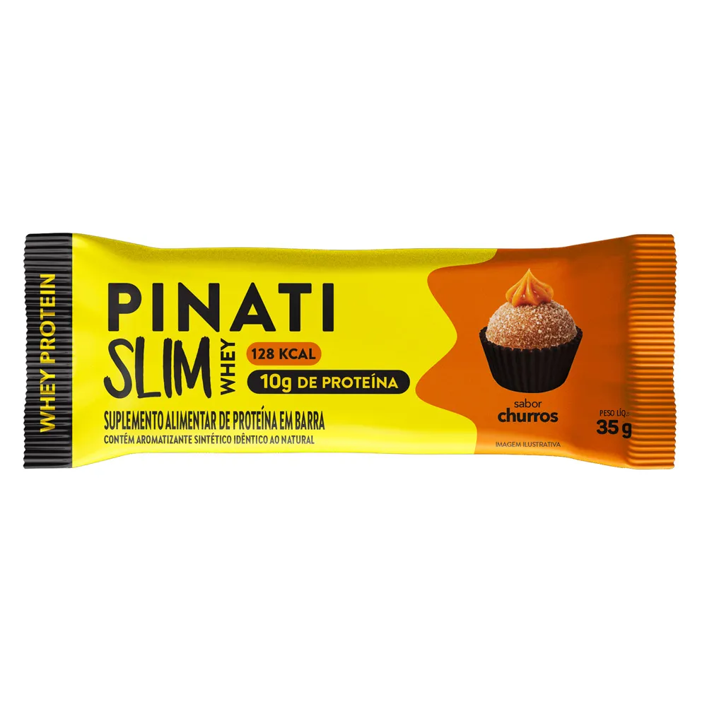 Descubra a deliciosa Barra de Proteína Pinati Slim Whey no sabor churros, perfeita para quem não quer abrir mão do sabor em sua alimentação. Com 10 g de proteína por porção e somente 128 kcal, essa barra é ideal para complementar sua dieta sem culpas.