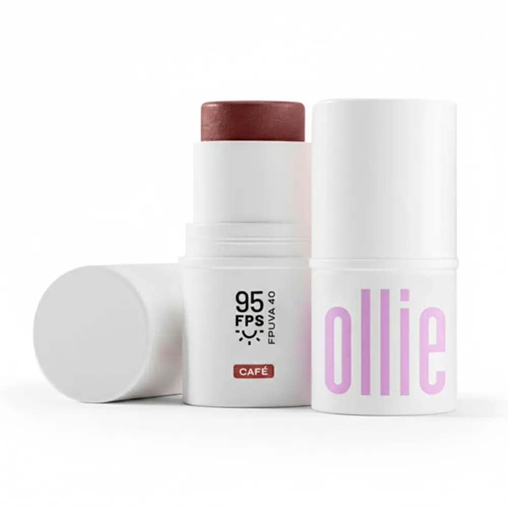 Nosso Ollie em Bastão 3 em 1 FPS 95 é multifuncional e pode ser usado como blush, batom e sombra. Agora com 2 NOVAS CORES: Café e Cereja. Completando o portfólio com 7 cores, sendo 2 com brilho - Terracota e Coral e 5 opacas - Rosa, Rosamalva, Amora, Café e Cereja.