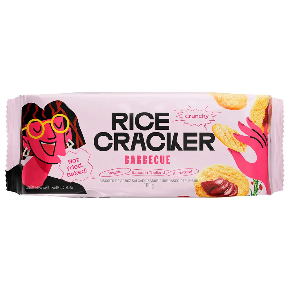 Rice Cracker Barbecue Biscoito de Arroz Salgado Sabor Churrasco Defumado 100g - Crunchy, Assado (Baked) e Veggie