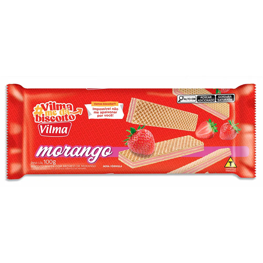 "Impossível não me apaixonar por você!" O slogan do Biscoito Wafer Vilma #AmeDaBiscoito Morango traduz a irresistível combinação de textura e sabor que este produto oferece.