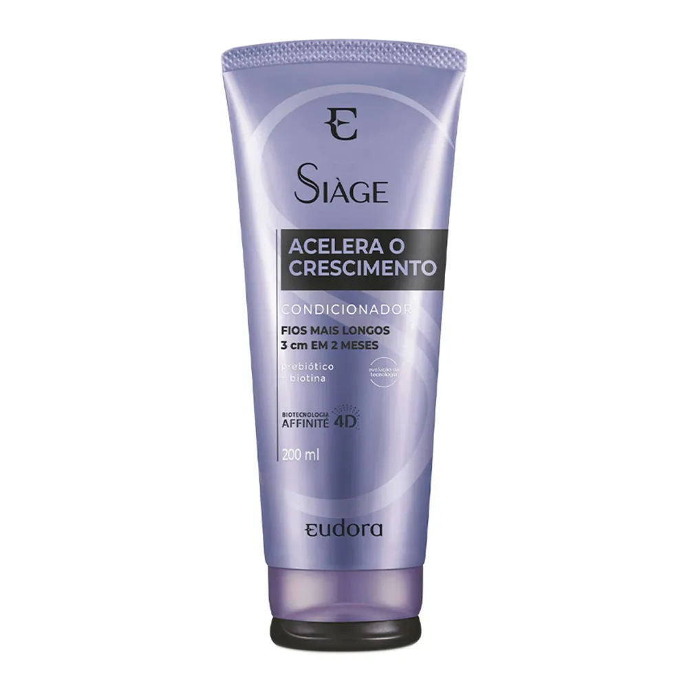 O Condicionador Eudora Siàge Acelera o Crescimento possui fórmula altamente condicionante que facilita o desembaraço do cabelo.