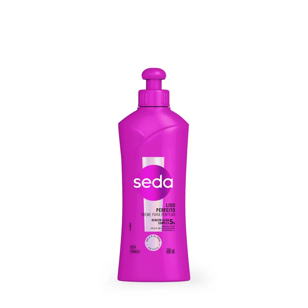 O creme para pentear Seda Liso Perfeito é a escolha ideal para quem deseja cabelos alinhados e macios. Enriquecido com 5% Keratin-Align Complex, um mix com queratina, óleo de macadâmia e vitamina C, este creme para pentear ajuda a fechar e selar as cutículas para uma superfície macia que retém a hidratação e melhoram o alinhamento do cabelo com ação anti-frizz para uma superfície mais macia. Este é um daqueles produtos que pode ser usado diariamente, pois não pesa nos fios, e deixa o cabelo macio, uniforme e alinhado.