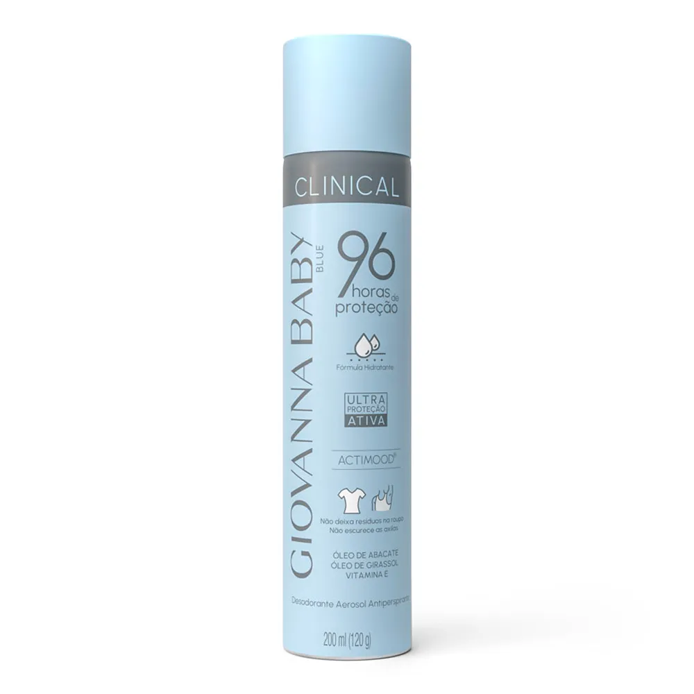 Desodorante Aerossol Giovanna Baby Clinical Blue 200ml - 96 Horas de Proteção, Ultra Proteção Ativa e Antiresíduos