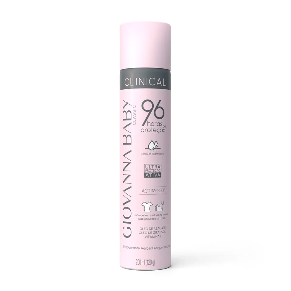 O Desodorante Antitranspirante Aerossol Giovanna Baby Clinical Classic é o produto de alta performance que oferece a máxima proteção e o cuidado suave da marca, com sua fragrância clássica e inconfundível. Sua fórmula CLINICAL garante uma barreira eficaz contra o suor e o mau odor por um período prolongado.
