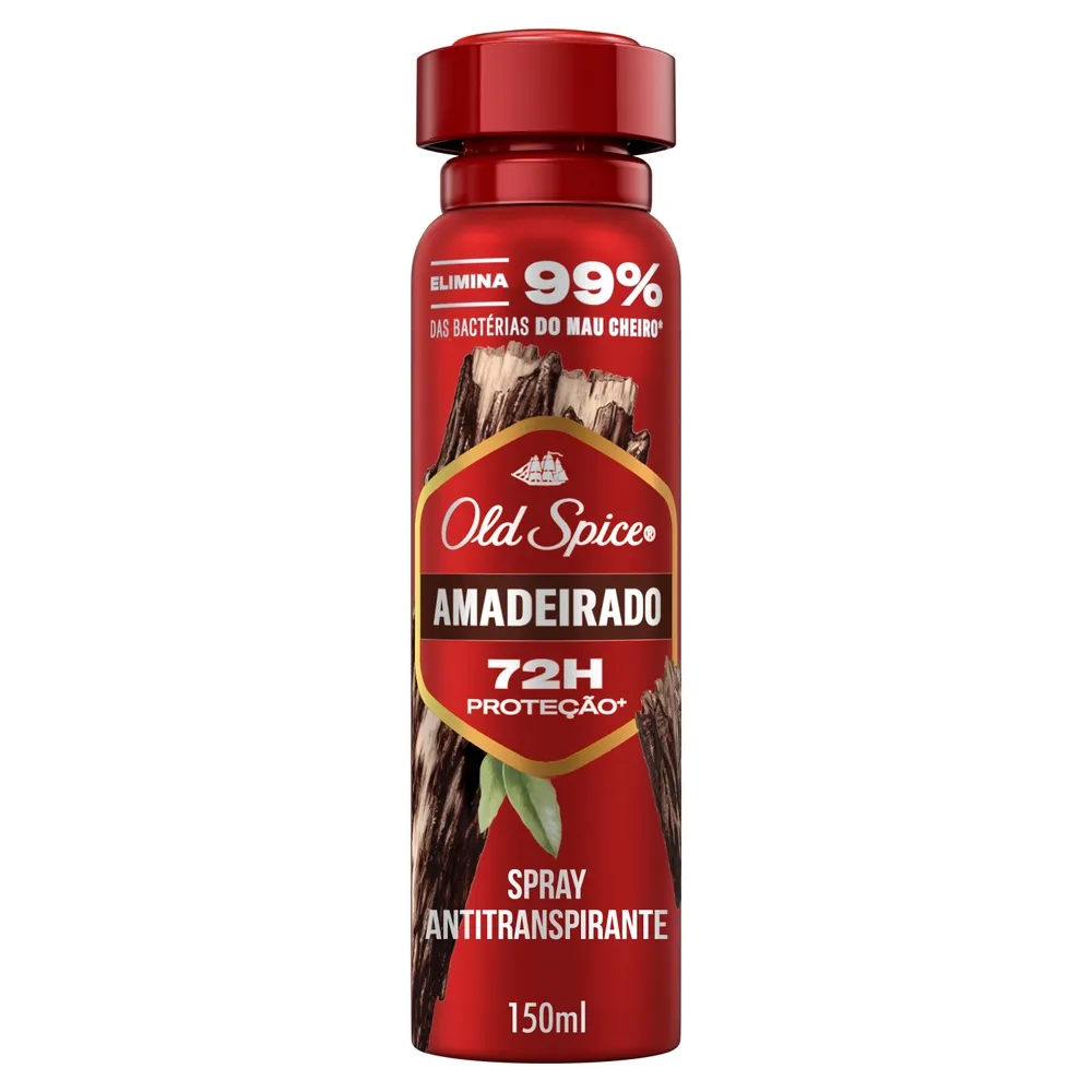 Descubra o desodorante antitranspirante em spray Old Spice Amadeirado! Sinta-se fresco e cheiroso a cada movimento, com seu aroma incrível amadeirado com menta e especiarias.