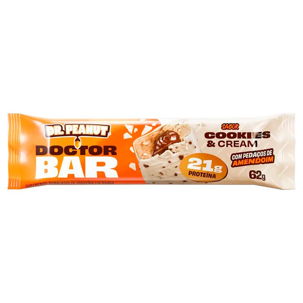 A Doctor Bar Cookies & Cream da Dr. Peanut é a escolha perfeita para quem busca um lanche nutritivo e delicioso. Com 21g de proteína por barra, é ideal para atletas, praticantes de exercícios ou qualquer um que precise de um reforço energético. Saborosa e crocante, esta barra combina a cremosidade do cookies & cream com pedaços crocantes de amendoim, garantindo uma experiência de sabor única a cada mordida.
