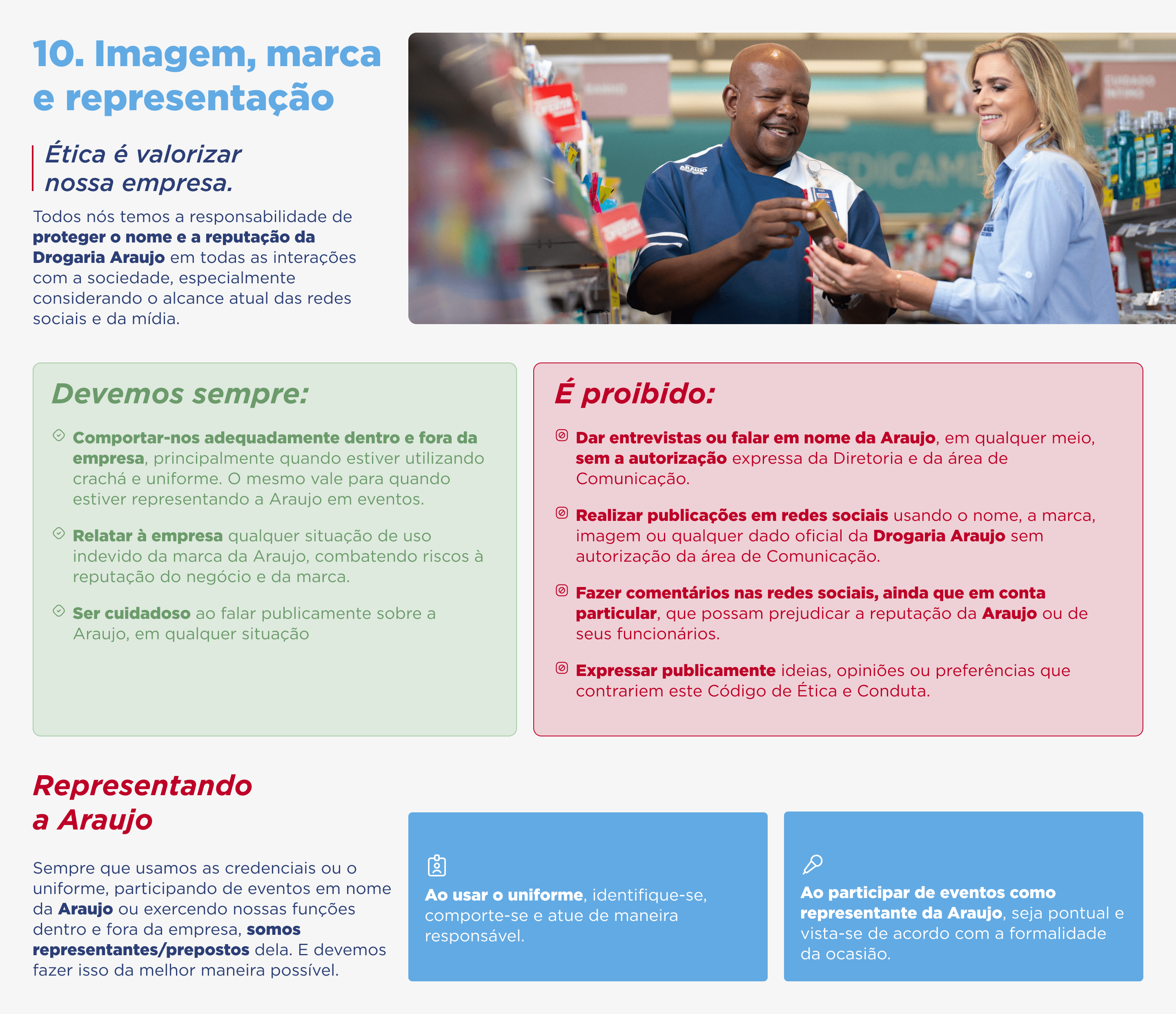 Os princípios e orientações do Código de Ética e Conduta são um verdadeiro guia para Ser Araujo – no cotidiano do trabalho, na dinâmica das relações e na vontade de estar, cada vez mais, próximos.