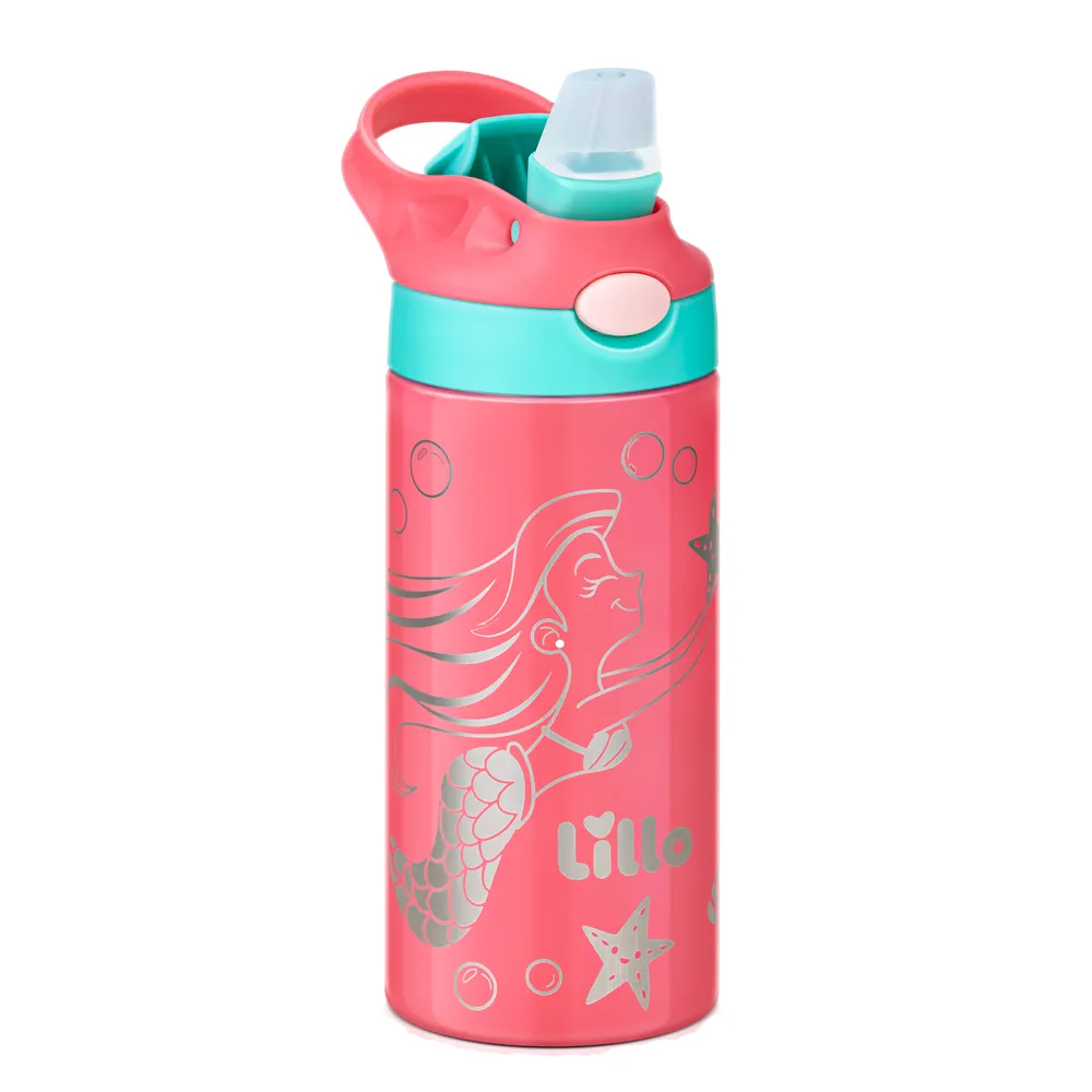 A Garrafa Infantil de Inox Sereia com bebedor silicone 350 ml Lillo foi desenvolvida para oferecer praticidade, segurança e estilo na rotina das crianças. Feita de aço inoxidável de alta qualidade, é resistente a quedas e possui alta durabilidade, é ideal para levar na mochila escolar, em passeios e atividades ao ar livre, garantindo que os pequenos estejam sempre hidratados. Seu isolamento térmico com parede dupla mantém as bebidas frias ou quentes por até 6 horas, ideal para todas as estações do ano.