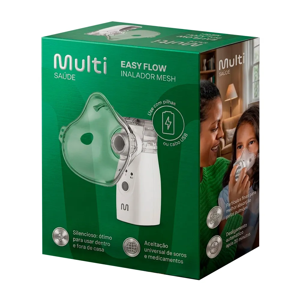 Respirar bem nunca foi tão fácil e prático! O Inalador Mesh Easy Flow da Multi Saúde (Modelo HC150) traz a mais avançada tecnologia para o tratamento de problemas respiratórios e alívio de sintomas de gripes, resfriados e alergias. Diferente dos nebulizadores tradicionais pesados e barulhentos, este modelo utiliza a moderna tecnologia Mesh (rede vibratória microporosa), que quebra o medicamento em partículas extremamente finas. Isso garante uma absorção muito mais rápida, profunda e eficiente pelos pulmões, acelerando o tempo de melhora.