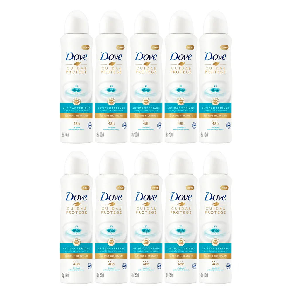O novo desodorante antitranspirante aerossol Dove Cuida & Protege Antibacteriano oferece proteção antibacteriana contra o mau odor com todo o cuidado de Dove. Esse desodorante antitranspirante antibacteriano elimina 99,9*% das bactérias causadoras do mau odor, deixando suas axilas livres do mau cheiro e do suor. Além da proteção antibacteriana, Dove Cuida & Protege Antibacteriano contém o exclusivo ¼ de creme hidratante de Dove, que nutre e contribui para uma pele comprovadamente mais macia e suave com apenas 7 dias de uso. Dermatologicamente testado e sem álcool etílico na formulação, Dove ajuda a reduzir irritações na pele, inclusive após a depilação.