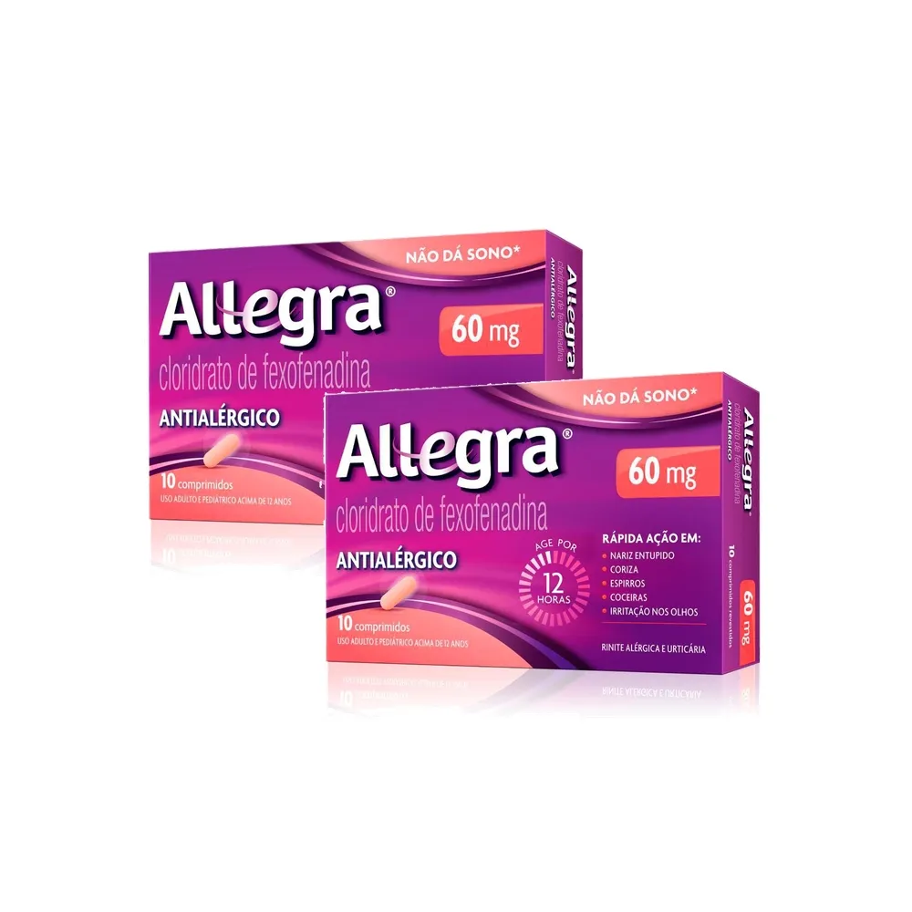 "KIT 2 ALLEGRA 60MG ANTIALÉRGICO COM 10 COMPRIMIDOS É UM MEDICAMENTO. SEU USO PODE TRAZER RISCOS. PROCURE O MÉDICO E O FARMACÊUTICO. LEIA A BULA. SE PERSISTIREM OS SINTOMAS, O MÉDICO DEVERÁ SER CONSULTADO."