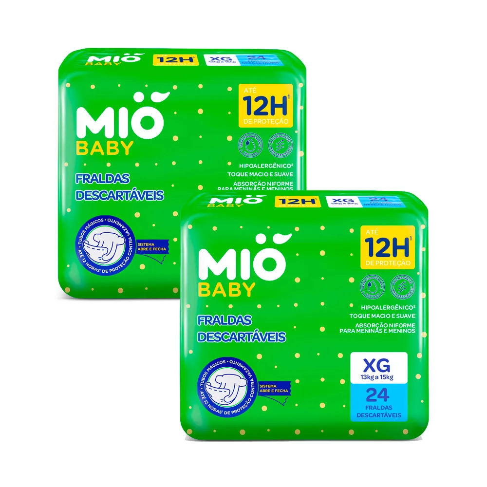 Descubra Mió Baby: fraldas que oferecem conforto e proteção por até 12 horas, dia e noite. Com um sistema de fecho seguro e fácil de usar, Mió Baby mantém seu bebê feliz e seguro em todos os momentos. Escolha a confiança e o cuidado que seu bebê merece.