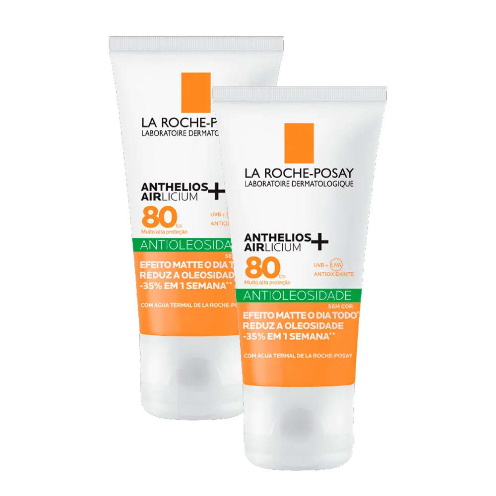 "Descubra o La Roche-Posay Anthelios Airlicium+ FPS 80, o protetor solar facial ideal para quem busca alta proteção e controle eficaz da oleosidade. Este protetor solar foi especialmente formulado para a pele oleosa e pele mista, incluindo aquelas com tendência à acne, oferecendo uma ação antioleosidade prolongada que garante uma sensação de pele limpa e fresca por até 12 horas. Essencial em qualquer rotina de beleza, sua fórmula avançada proporciona alta proteção UVB/UVA (FPS 80 / PPD33), combatendo os danos solares e prevenindo o fotoenvelhecimento.