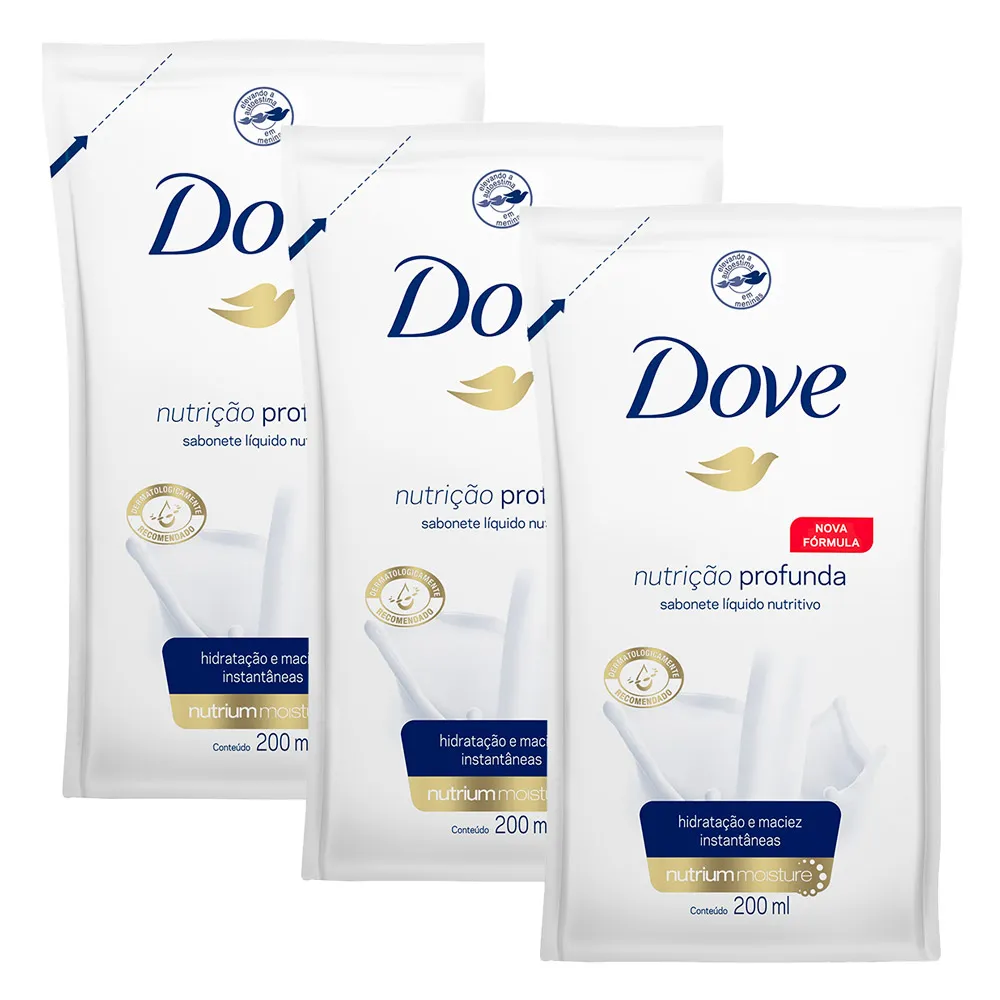 • O Sabonete Líquido Refil Dove Nutrição Profunda contém nutrientes de origem natural