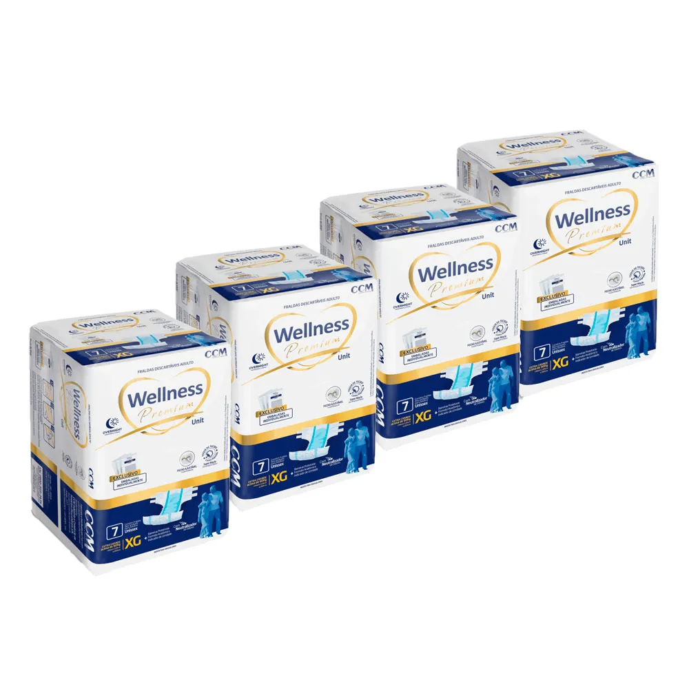 Kit 4 Fralda Geriátrica Wellness Premium Unissex XG 7 Unidades