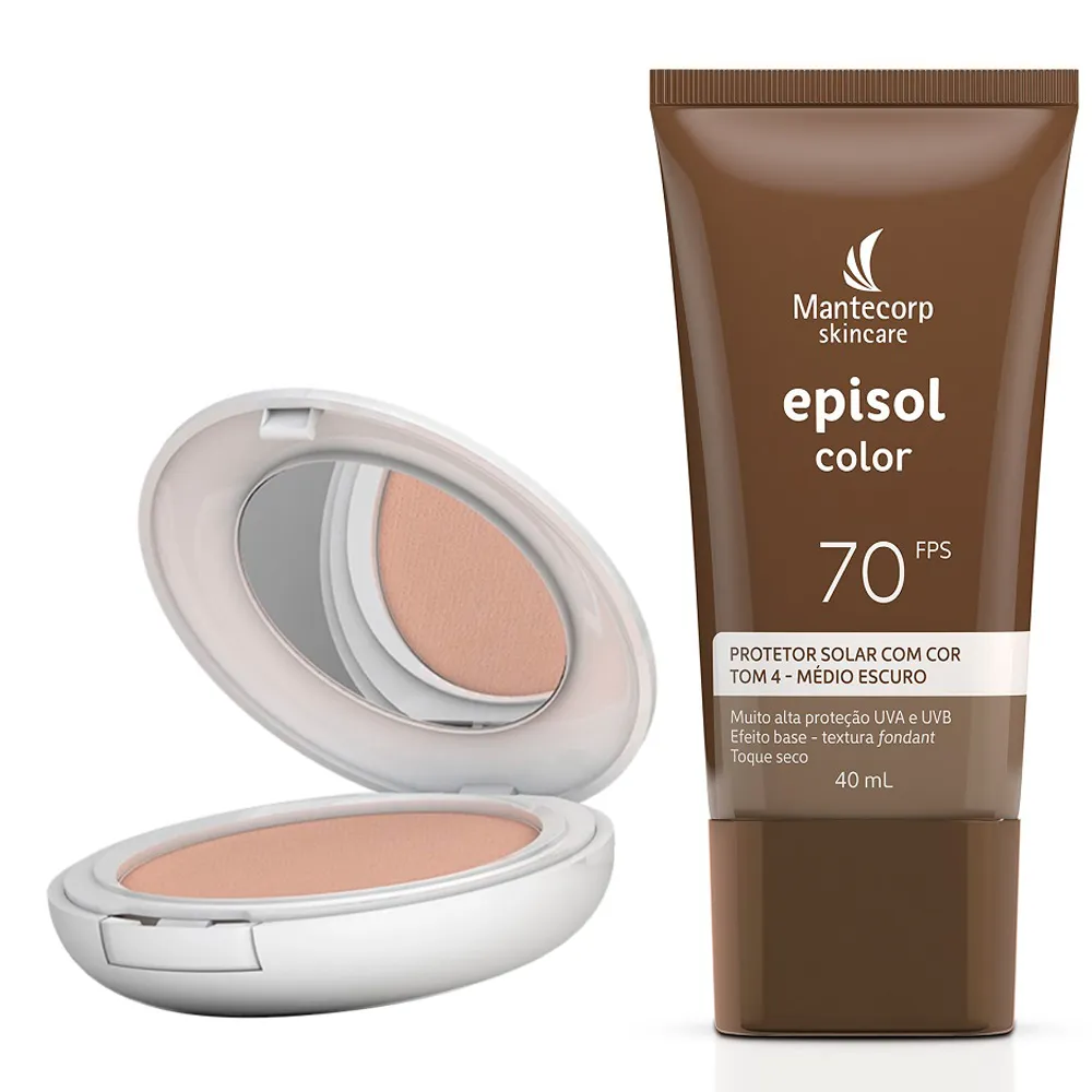 Episol Color Pó Compacto é uma linha de proteção solar com cor que promove uniformidade da pele e é ideal para reposição da proteção solar ao longo do dia, além de reforçar a maquiagem com disfarce das imperfeições, absorção de suor e oleosidade, com efeito matte e toque seco. O produto está disponível em cinco tonalidades: pele extraclara, clara, morena, morena mais e pele negra, todos com FPS 50.
