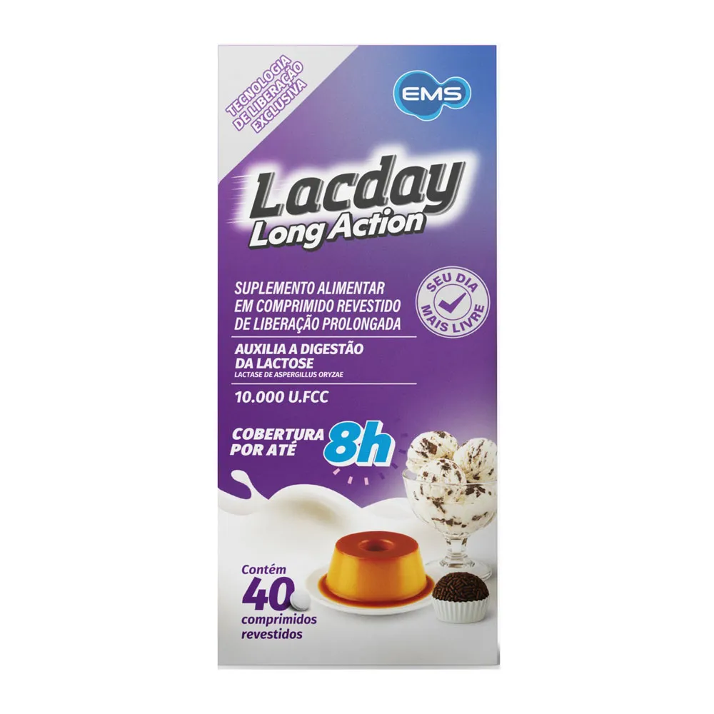 O Lacday Long Action é a solução definitiva para quem possui intolerância à lactose e deseja aproveitar as refeições sem preocupações durante todo o dia. Diferente das enzimas tradicionais que precisam ser ingeridas a cada nova refeição láctea, a versão Long Action conta com uma tecnologia de liberação exclusiva que oferece proteção prolongada.