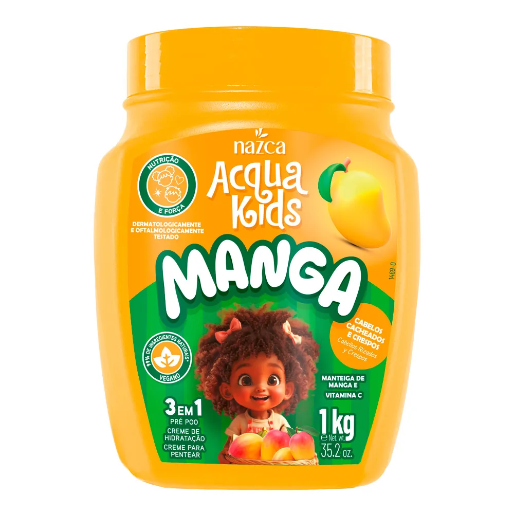 O Creme 3 em 1 Nazca Acqua Kids Manga é o tratamento multifuncional e nutritivo para o cabelo das crianças. Em um pote de 1kg, ele simplifica a rotina de cuidados com os cabelos cacheados e crespos, fornecendo nutrição, força e definição com o delicioso aroma de manga.
