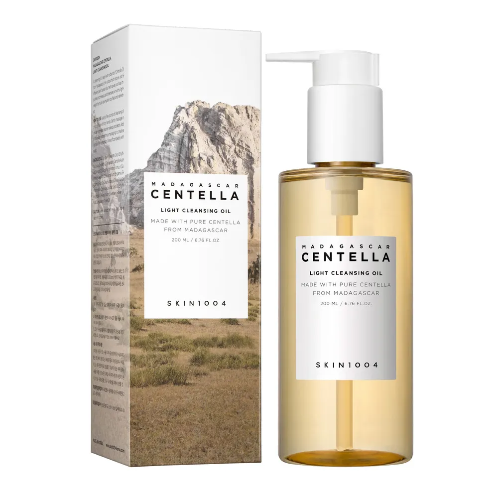 SKIN1004 Centella Light Cleansing Oil é um óleo de limpeza facial leve e eficaz, formulado com extrato de Centella Asiática de Madagascar. Remove maquiagem, protetor solar e impurezas acumuladas ao longo do dia sem agredir ou ressecar a pele.