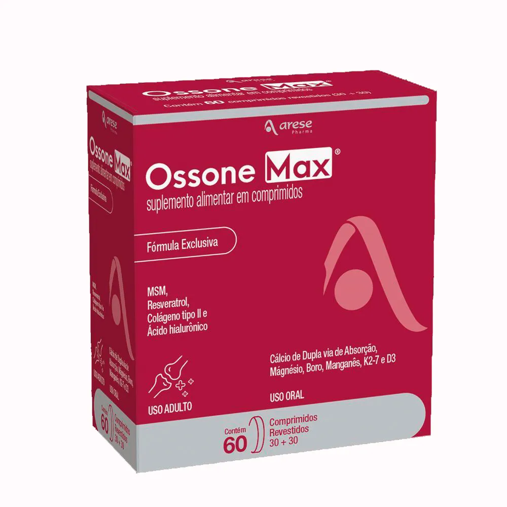 Descubra Ossone Max, o suplemento alimentar inovador que faz a diferença na sua saúde. Com 60 comprimidos revestidos, Ossone Max foi desenvolvido para nutrir suas articulações e ossos, promovendo resistência e flexibilidade. Sua fórmula exclusiva combina nutrientes essenciais que ajudam a manter a saúde óssea, sendo ideal para pessoas ativas e aqueles que buscam melhorar sua qualidade de vida. A utilização regular do Ossone Max pode auxiliar no alívio de desconfortos articulares, proporcionando mais liberdade de movimento. Invista no seu bem-estar e sinta a diferença a cada dia! Experimente Ossone Max e fortaleça sua jornada rumo a uma vida mais saudável.