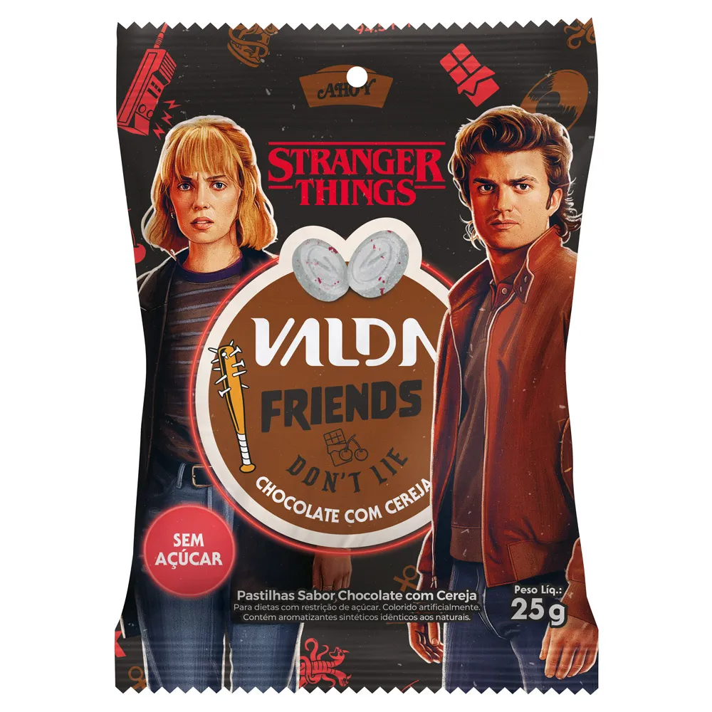 R$ 7,89Pastilhas Valda Friends Stranger Things Chocolate com Cereja 25g - Sem Açúcar, Edição Limitada