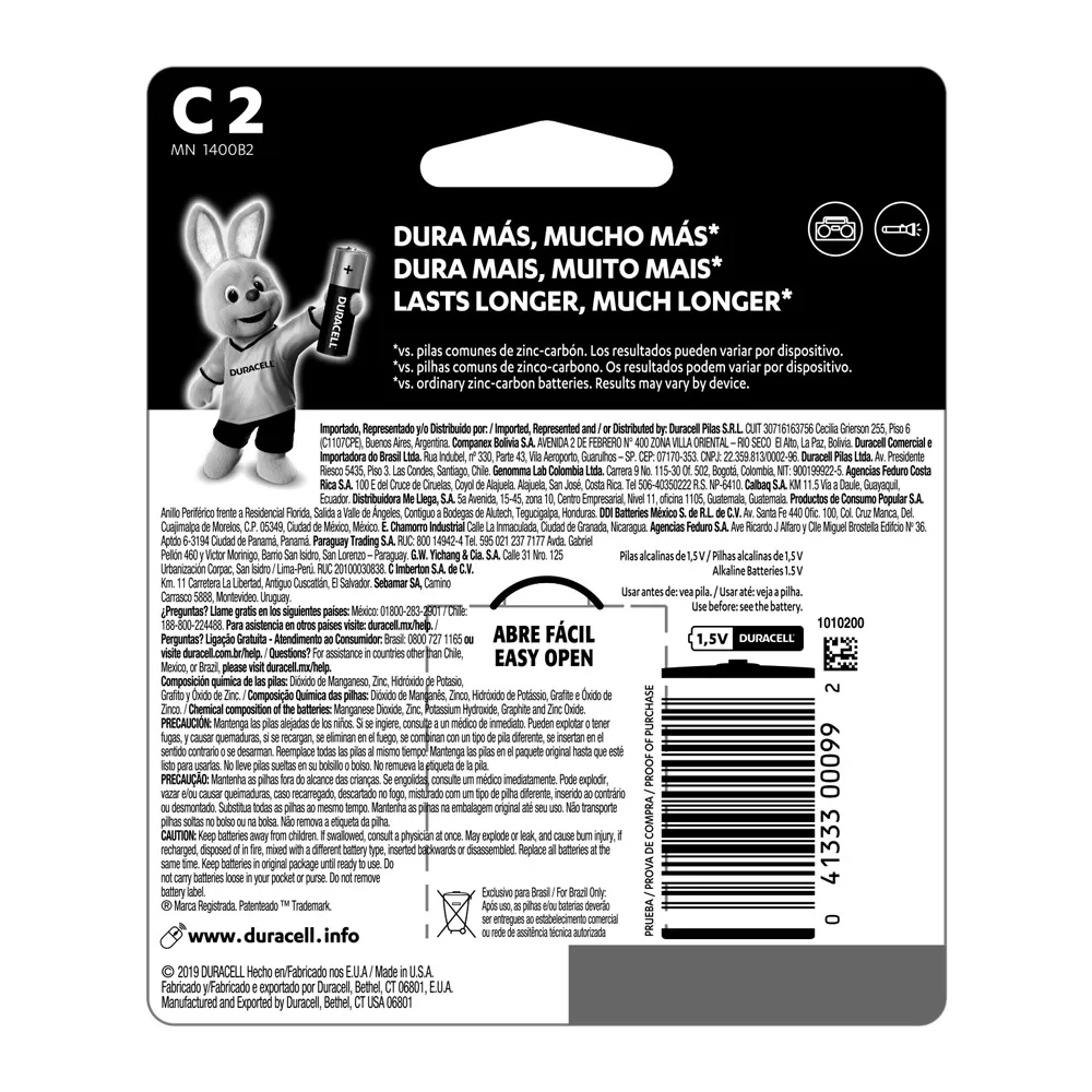 Quando se trata de pilhas confiáveis e de longa duração, Duracell é a melhor opção. Projetadas para fornecer aquela energia extra as pilhas C (Pilha Média) proporcionam energia confiável aos aparelhos do dia a dia, como brinquedos, consoles de jogos portáteis, fechaduras eletrônicas, lanternas, etc. Além disso, a tecnologia de Duracell preserva a energia das pilhas que ainda não foram usadas, por até 10 anos.As Pilhas Alcalinas Duracell C duram até 10 vezes mais* vs. pilhas comuns de zinco-carbono.Os resultados podem variar por dispositivo.