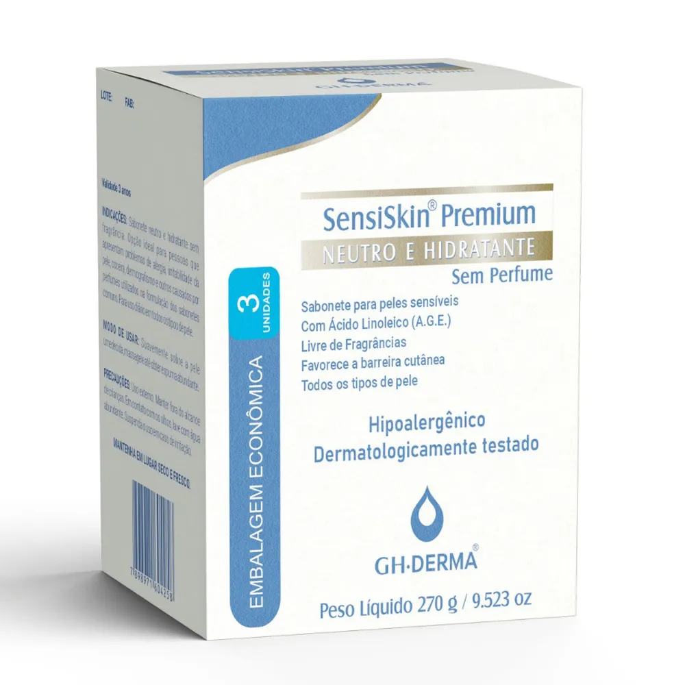 Sabonete SensiSkin Premium Neutro e Hidratante sem Perfume – Kit com 3 Unidades