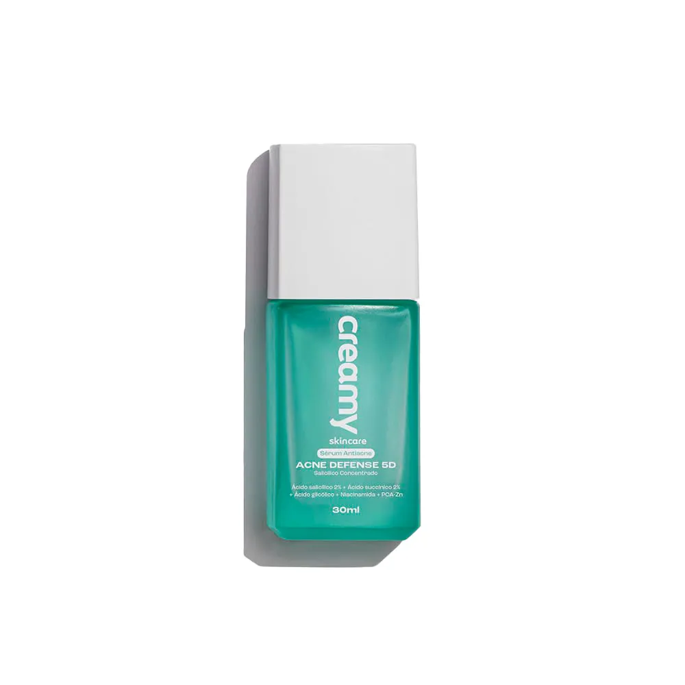 O Fim do Ciclo da Acne O Acne Defense 5D da Creamy Skincare é uma solução completa para peles oleosas e acneicas. Sua fórmula concentrada atua nas 5 principais frentes de combate à acne: controle da oleosidade, desobstrução dos poros, ação antibacteriana, redução da inflamação e prevenção de marcas pós-acne.