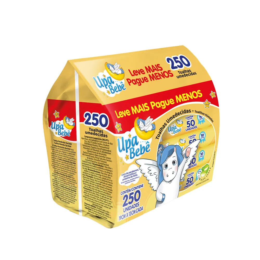 Higiene Completa com Carinho e Economia As Toalhas Umedecidas Upa Bebê foram desenvolvidas para proporcionar uma limpeza eficiente e suave. Sua fórmula especial é enriquecida com Extrato de Aloe Vera, que possui propriedades hidratantes e amaciantes, ajudando a prevenir o ressecamento e assaduras.