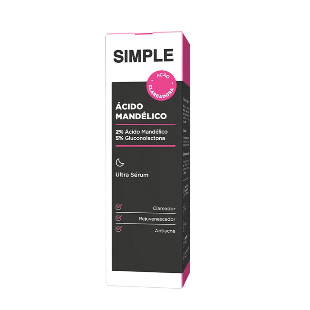 O Ultra Sérum de Ácido Mandélico da Simple Organic é um tratamento multifuncional intensivo, com foco na renovação e uniformização da pele. Com uma poderosa sinergia de ingredientes, ele atende às necessidades de peles com manchas, sinais de envelhecimento e tendência à acne.
