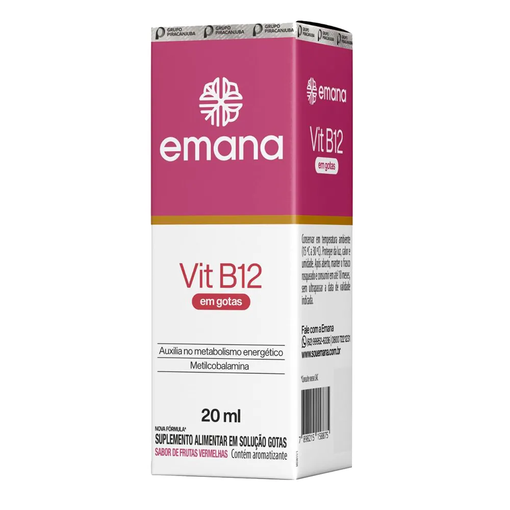 Suplemento Vitamínico Emana Vit B12 em Gotas 20ml - Metilcobalamina, Auxilia no Metabolismo Energético e Imunidade