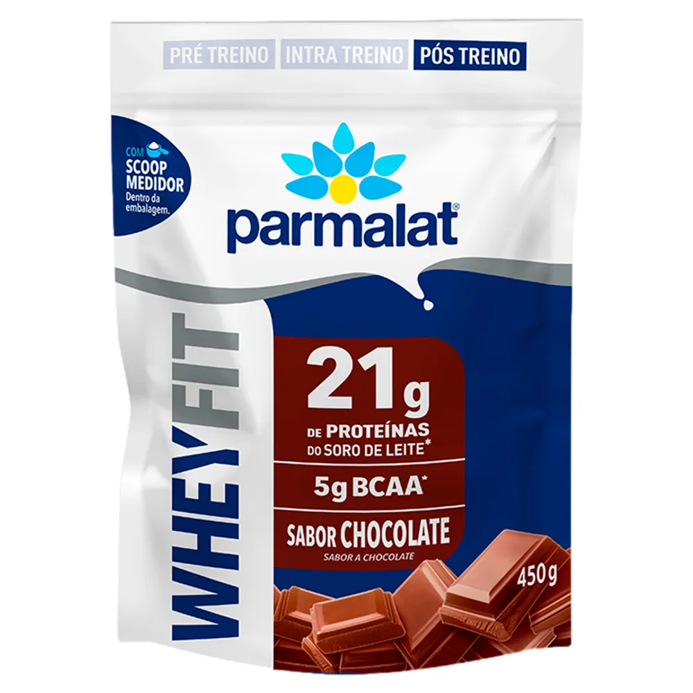 O Whey Protein Chocolate Parmalat WheyFit 450g é o suplemento ideal para quem busca otimizar a performance nos treinos e garantir uma nutrição completa e saborosa. Formulado com a qualidade Parmalat, este suplemento em pó oferece 21g de proteína do soro do leite por porção, essencial para a construção e recuperação muscular, além de aumentar a sensação de saciedade.