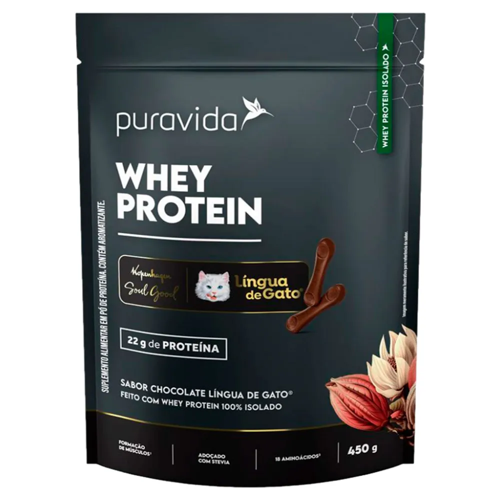 Invista na melhor recuperação muscular com a pureza e o sabor premium do PuraVida Whey Protein Isolado Língua de Gato!